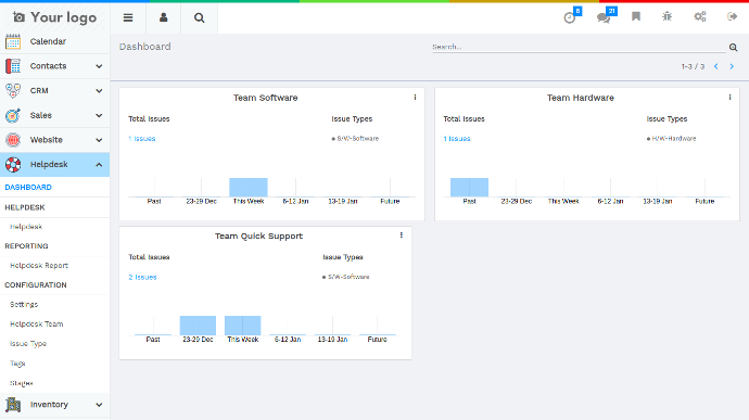 Odoo ERP is a suite of open source business apps that cover all your company needs: CRM, eCommerce, accounting, inventory, point of sale, project management, etc..
